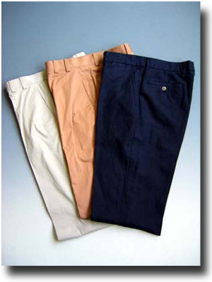 写真は最近流行の美脚パンツ。ひざ下あたりから裾まで細くなっています。私のように足の短いものがパンツをはくと綺麗なシルエットが出る前にパンツをちょん切ってしまうことになりますが、美脚パンツは割りと股下より早い段階で細くなっていますから、その心配もなし。おまけに後ろのポケットの位置が割りと高めについていて脚を長く見せる効果も。