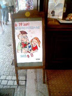 当店の店頭にはブログでリンクを貼らせて貰っていますtamd2さんに作って貰ったA型看板に、「父の日」にちなんでイラストと10日程前からそのイラストに父の日までのカウントダウンを。