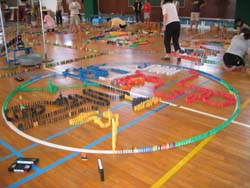 蒸し風呂のような体育館で大変でしたが、ほぼ26000個を並べ終え、倒すことができました。