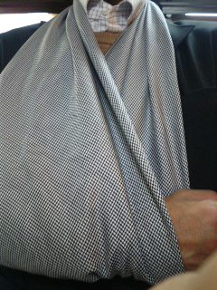 オリジナル三角巾 オーダーシャツ以外のファッション X Facebook はてブ LINE Pinterest コピー 2005.10.18 こんにちは! 白いガーゼだと何だか本当に痛々しいし、決してお洒落でもないのでシャツ生地で作ってみました。三角巾てかなりの大きさが必要で最初は黒のドットの生地があったのですが、首の下に釣り上げているような状態でしたから、違う生地を探すと黒白の千鳥格子(英語ではハウドトゥース犬の歯)を発見。それで三角巾を作ってみました。 骨折の治療の為の三角巾なら別に白でなくてもいいと思いましたので。 また別の生地で作ってみたいと思います。こうすれば骨折ライフも楽しいものに。