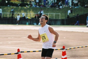 言い訳ですが、いいタイムでしたので本当にグランドに入ってからも数人を抜き更にタイムを伸ばすべくラストスパートをかけていた時の写真です。