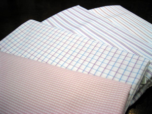 暫く前に発注しておりました、イタリアのカンクリーニ社の新柄生地が入荷しました、全体的にパステル調で今までですと、色地に色のストライプが主流でしたが、白地に色物のストライプなども再び流行の兆しです。写真はピンクやパープルのストライプ或いは格子のものを集めました。一足早く春の色合いを先取りしたいですね。