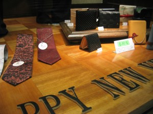 正面のウィンドウは隅々まで拭きあげ、そしてシンプルなウィンドウにしました。スーツとジャケットスラックス、そしてタイと財布。