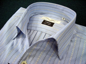 一年前に契約していた、スイスのRECO社の生地が入荷してきましたので、直ぐにオリジナルシャツとしてデザインし店頭に並べました。