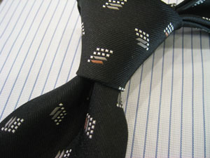 最近はNHKのキャスターは上手ですよね。綺麗にディンプル(えくぼ)を作って真っ直ぐに結べている。綺麗な三角形を作るにはセミウィンザーで結ぶのがいいとは思うのですが、セミウィンザーだと結び目が大きくなりすぎる。という方もいらっしゃると思いますが、小さく結ぶコツもあるのですよ。文章では書きづらい。私の場合は小剣を二つに折って細くしてそれに大剣を絡ませていくようにするのですが。