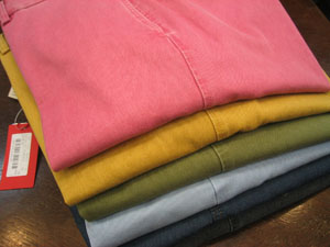 昨年辺りからお客様も明るい色合いのパンツを求めてこられるようになりましたし、今年辺りはカラーパンツもブレークしそうな予感です。