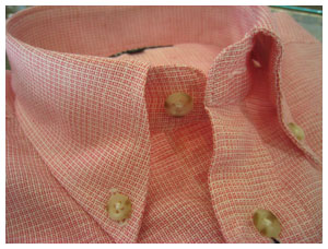 私の場合も通常のスーツに前ボタン二つのドゥエボットーニのシャツを着ていたのですが、ある方は紺色の綿のスーツに、綺麗なストライプのスナップダウン。紺などの濃色を選択することによってフォーマル感が出てそして綿素材からくる清涼感も演出でき、とても粋な着こなしでした。スーツの素材なども考えると、人とは違った演出が可能かと思います。写真は今回良く見かけたピンクのボタンダウン。