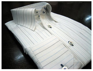 オーダーして頂いたシャツは例えば、衿が縮んでしまったり、カフス周りが縮んでしまった場合は白の衿にして、クレリックシャツとしてよみがえらせることもできます。