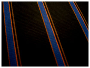 本日のシャツ生地は黒ベースのストライプです。昨日は白でしたので、本日は黒ベースのものをイマイチ色合いがはっきりでておりませんが、黒地にブルーのストライプそしてそれを細いオレンジのストライプで囲っております。ストライプとストライプの間隔は2.2センチありますのでかなり広いストライプです。秋口のカジュアルに如何でしょうか?イタリーFERNO(フェルノ)社製生地