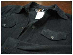 今日の商品は羊革ヌバックのシャツジャケット。イタリア製です。触りも柔らかく、写真でお分かりになるでしょうか?黒ではなくネイビーです。ジーンズの上にちょっとひっかけるような感じでご着用頂ければと思います。金沢などの北陸地方ではこれからは天気が段々と悪くなり、最近は暖冬と言えども雪が混ざることも多くなると思います。どちらかと言うとレザーの商品は難しい地方ではありますが、ちょうど今日のような天気の時にはこういうアイテムが便利だと思います。お勧めです。どうですか?物欲わきました?ごめんなさい書いている私は今のところまだ食欲です(笑) レザーシャツジャケット¥139,650-(本体価格¥133,000-)