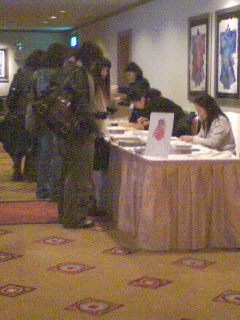 もう一度会場を説明させて頂きますと、各客室の入り口の所にメーカーの名前と、メンズを扱っているのか、レディースを扱っているのか、またアイテムが何か?と言うパネルが飾られております。一通り見て回りましたが、昔扱っていたLANDIと言うコートメーカー。しかし、以前はスーツの上にもカジュアルなコートを着ましたが、最近はカジュアルはカジュアル、スーツの上にはやはりドレスのコートが求められるようになっている現状から言ってパス。ましてや価格がかなりします。