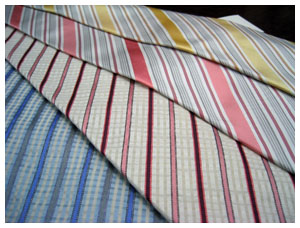 昨日大阪で仕入れてきましたネクタイが早速入荷してきました。ネクタイは半年前に発注するものもあることはありますが、ほとんどが今のシーズンのものをその時に見て発注、購入してきます。私の取引している商社は、大手のデパートなどにも商品を納めている商社で、もう何十年ものお付き合いとなります。ネクタイの仕入れはほとんど直感で、数あるブランド(アルマーニ・ベルサーチ・ブルガリ・フェラガモ・エルメネジドゼニア・ビビアンウェストウッド・クリッツィア・ロメオジリ)などを全て見て、全体の色合いの流行を掴みます。後はそれぞれのブランドから、売れるものというよりも直感的に気に入ったものを次から次へとピックアップしていきます。商社の方が私の後ろについてピックアップしたタイを箱に入れてくれます。今回の仕入れに関しては時間もなかったことから約20分くらいで、50本程のタイを仕入れました。これは決していい加減な訳ではなく、ネクタイを眺めながらじっと見つめていても仕方がないことで、お客様自身もタイの購入に至るきっかけは第一印象で気に入るか気に入らないか。と言うところに比重が多いようですから仕入れる方も一緒です。むしろとやかく悩む時よりは今回のような仕入れの方が良い物を仕入れることができるようです。