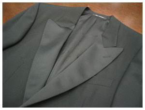 ショールカラーのタキシードにちょっと長めの衿の白のシャツそして、シルバーの無地のタイ。普通は絶対にしないコーディネートですよね。