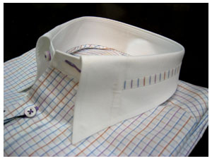 まぁそんなことはどうでもいいことなのですが、忘れないうちに春の新作のカジュアルシャツ。昨年も同じデザインで作ったもので今年は少し工夫をして新しく作りました。クレリックの白い衿の中央にストライプを走らせます。最後の始末が難しいのですが、そこは生地を挟み込むようにしてフィニッシュ。