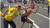 こちらはフルマラソンの部のスタート。ひかれそうになりました。しかし凄い迫力で迫ってきます。参加の段取りもそうなのですが、今年はタスキを作るのも当店として協賛しました。と言っても工場に先日の柏餅を持っていって、何とか作ってと頼んだだけなのですが。