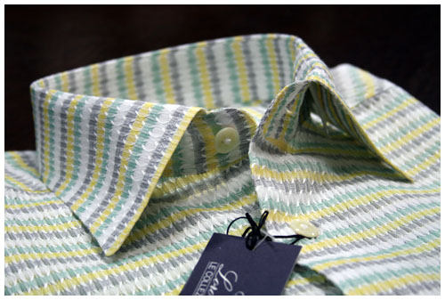 今日は洋服やシャツの素材の方である方とお話することがありました。こんな生地だとシャツにならないだろう?と言う先入観で素材を選ぶと先に進まない時があります。当店のオリジナルのカジュアルシャツはレディースの生地を使うこともあります。昨年も使用しましたが、スイスの「RECO」の生地。