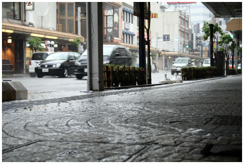 今日は朝から土砂降りでした。しかし不快な感じはまったくなく、これは湿度も高くなく寒さや暑さを感じないちょうどいい気温だったからでしょう。むしろよどんだ空気を流してくれるような朝の片町です。