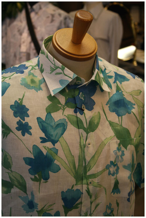 さて、話題を明るく店頭はもう夏です。麻のプリントのシャツが入荷。イタリアはPUNTOの生地を使ったオリジナルのカジュアルシャツです。