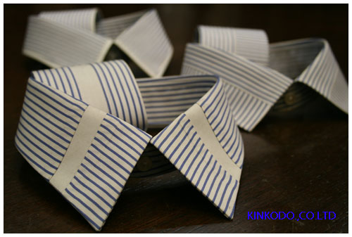 今日もちょっと変わったデザインを依頼されました。衿とカフスをクレリック仕様で白にして、その衿とカフスの縁をストライプの生地をはわすというデザイン。ちょっと分かりにくいかと思いますが、出来上がったらまたご紹介させて頂こうと思います。