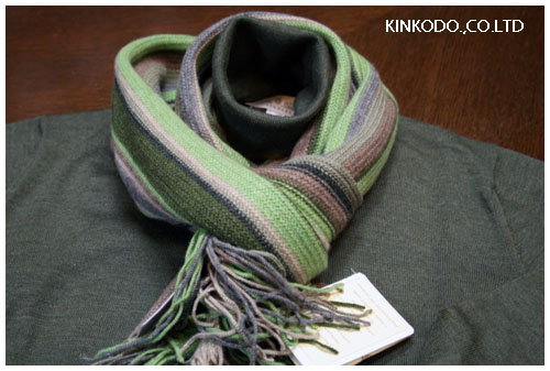 茶系統でのコーディネートをお考えのお客様に是非お勧めします。モスグリーンのタートルネック¥24,150- グリーン系のカシミヤストール¥49,350- ともにDella Ciana Made In Italy