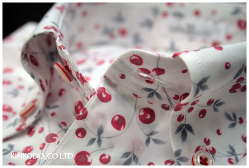 チェリーのようなプリントの半袖シャツ。小柄ですのでプリントと言っても上品な感じ。夏風邪嫌ですね・・・