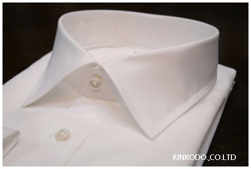 白のエジプト綿の綾織の生地をシンプルにワイドスプレットで白蝶貝を使って上品にまとめたシャツです。新しいシャツ、そしてこのような上質な素材に一番最初に手を通す瞬間と言うのは何物にも変えがたい贅沢な瞬間です。