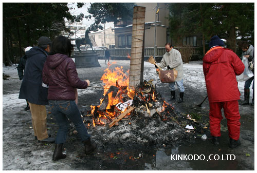 この炎の中にうまく書初めを放り投げたつもりだったのですが、風にあおられてどこかに飛んでいったり、逆に上から何か覆ってきてうまく舞い上がらなかったり。と娘の書初めはうまく上がりませんでした。炎の力で上に舞い上がると字が上手になるとか・・・左義長に頼らずに、先ずはその鉛筆の持ち方からしっかり練習しろと思うのは親だからでしょうか。