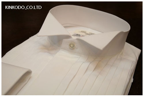写真はトーマスメイソン社の生地で当店でオーダーを頂いたウィングカラーのシャツ。もし、国家を代表するような立場になられる予定がございましたら是非金港堂でお願い致します。