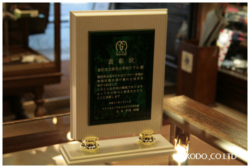 さて、本日はちょっと仕事を昼から抜け出しておりまして、小学校のPTAを代表しまして、金沢市文化ホールに賞を受け取ってきました。