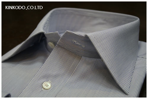 こちらはタブカラー。ネクタイの下でスナップをとめ。シャープ感を演出します。