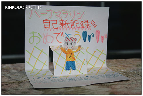 写真は昨年福知山マラソンを走った時に娘が作ってくれたもの。ちなみにハーフマラソンと書いてありますが、フルマラソンです。まぁ子供の理解力と言うか・・・まぁそんなものです(笑)