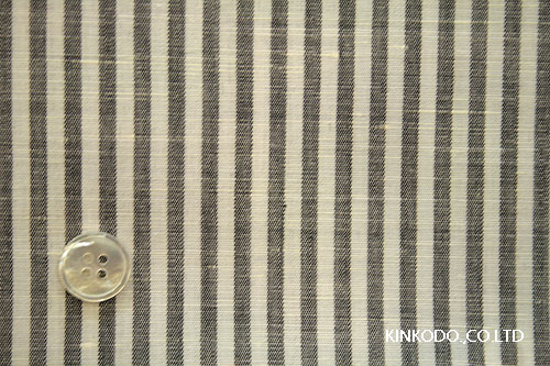 茶色の麻素材のストライプシャツ。なかなか着ている人見たことありません。お勧めです。