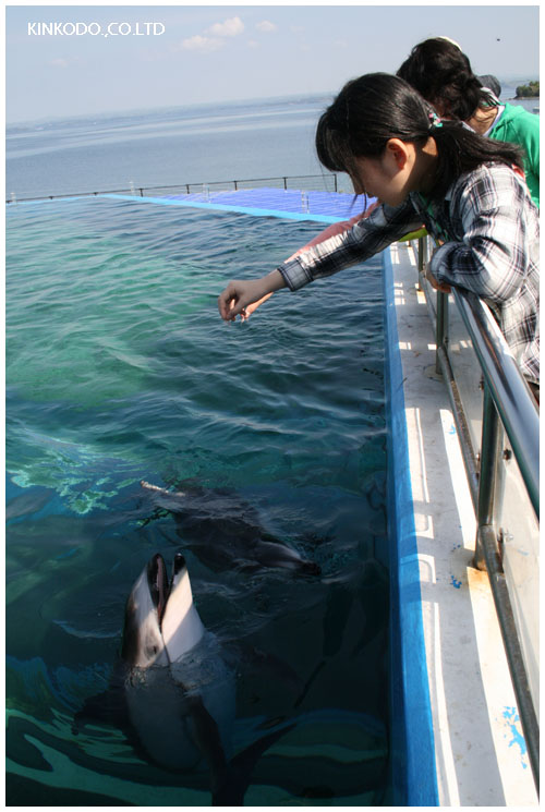 先ずはイルカにえさやり。