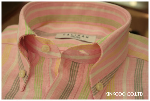 クールビズが近くなって、ボタンダウンのシャツが売れておりますし、オーダーでのご注文も増えております。このボタンダウン。衿に膨らみを付けるかどうか?はお客様の好みによりますが。例えばこちらのシャツ。