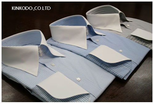 衿裏とカフス裏はストライプ、衿の表、カフスの表は白。ウィングのようです。