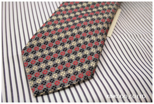 このような黒白のストライプとコーディネートすると素敵でしょ。ストライプのシャツでもこのような小紋柄ですと、全く問題なく合わすことができますし、またより柄を強調させることができるかと思います。