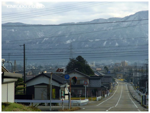 城端から福光方面へ右の方に積雪が見えますが、IOXアローザのスキー場か?