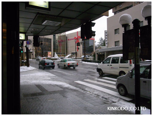 あまり積雪は変わっていないように見えますが、ずーっと降り続いてます。これぞ金沢と言うようなどんよりした空に雪が舞う。