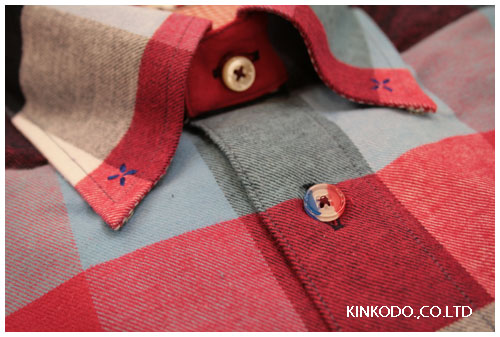 こんな感じ。チェックの生地は衿の後ろにも使われています。