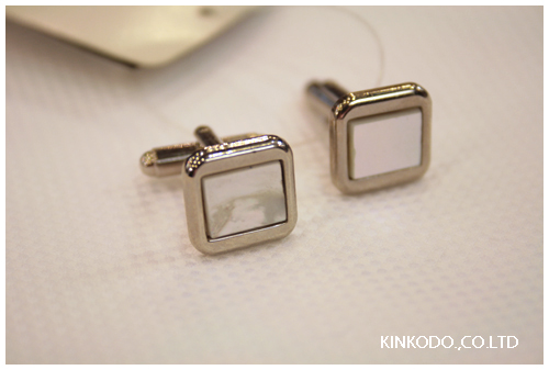 白蝶貝のカフスです。お祝い事には真珠や白蝶貝を使いますが、あまり華美ではなく、シックにそしてお洒落に、さり気なく、このようなカフスをして頂ければと思います。