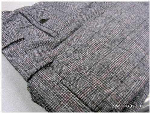 綿素材です。女性はストライプやチェックを下に履いて上を無地でコーディネートすることが多いですが、男性はこれからだと思います。グレンチェックの他に千鳥格子もセレクト。入荷は今年の9月くらいになると思います。