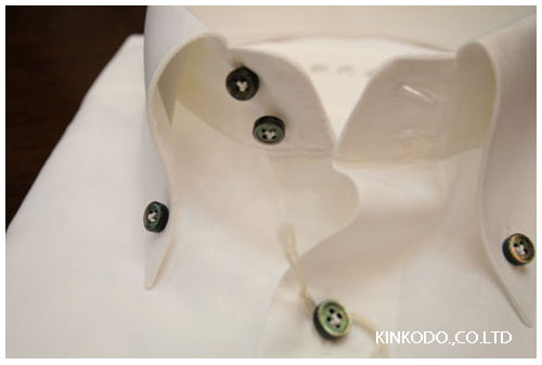 白いシャツに黒の貝ボタン。これが結構ポイントになる訳でございます。