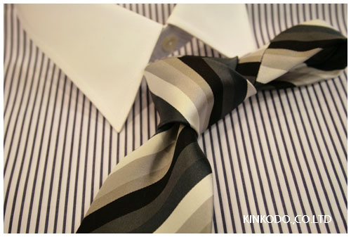 最近シャツもストライプのものが多いのですが、ストライプ オン ストライプでも負けない大胆なストライプの巾です。ネクタイ自体に存在感があります。