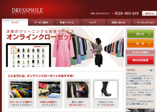 洋服いっぱい持ってて、預ける場所がない、お金の余裕のある方には便利かも。確かに保管の環境は良さそうですしね。http://dressphile.jp/index.html
