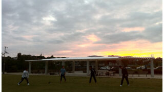 6時でちょうど日が上ってくる時期になりました。朝焼けの中ストレッチをして、ジョグそしてスピード練習。今日8キロ走れば月間200キロ達成だったのですが・・・インターバル練習の際に、一列に並んで向こうの橋まで「レディーゴー」と掛け声をかけて出た瞬間、雨でぬかるんでいたせいでしょうか。身体を捻ってしまい。太ももの付け根あたりを痛めました。はいこれで万事休す。これで今日の練習はおしまい。帰りは軽くジョグで6キロ程走ったのですが。月間200キロに2キロ足らず。無念。今日から箱根駅伝を走ったことのあるメンバーが入ってくれてかなり意気込んでいたのですが。あ~本当に残念。