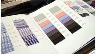 生地サンプルからリピートのものも含めてチョイス。ここが腕の見せどころ。お客様からリクエスト頂いているような生地もあるのですが、果たしてこのサンプル生地の中にあるか?またカンクリーニの生地サンプルも来月新しいのが届くとのこと。そちらも楽しみです。