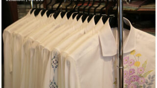 生地はエジプト綿の140番のロイヤルオックスフォード、白蝶貝のボタンを付けて作らせて頂いたものに、16名の作家さんが描かれました。
