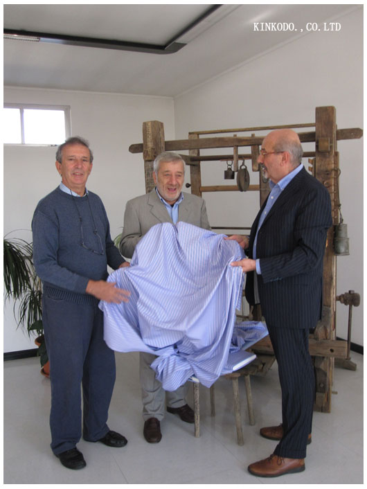 『 創業者の Mr.RUBINELLI は 1990年まで TESTA社にて生産部の責任者でしたが、「自分自身で もっと品質の良いシャツ地を創りたい」 と考え、TESTA社で同僚だった Mr.GRANDI とともに TESTA社より独立しました。 その後、1992年まで TESTA社のセールス部の責任者であったMr.BRUNOも加入し、イタリア国外を含めて顧客開拓に当たっています。現在の主要客は、ZEGNA – CANALI – BROOKS BROTHERS – PAUL STUART そして金港堂です。 』
