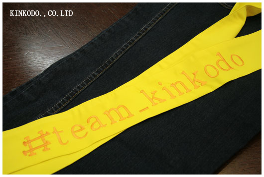 タスキを工場で作ってもらいました。23日の河北潟一周駅伝の為に。
