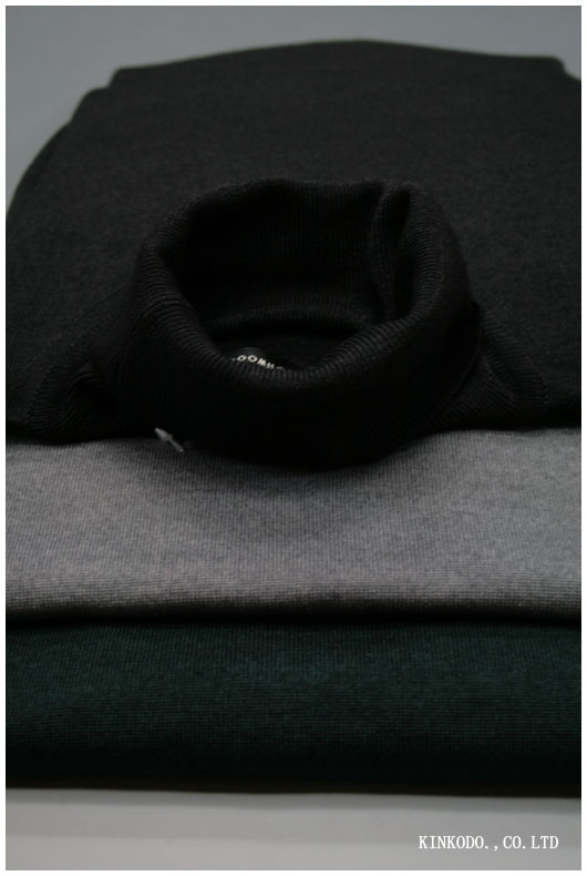 イタリアBellwoodのエキストラ・ファイン・メリノウールのタートルネックです。更に超ハイゲージ。メリノウールのタートルネックはイギリスのJohne Smedleyが有名ですが、それとて30ゲージや33ゲージ。こちらは44ゲージの更に細い糸で編んであります。